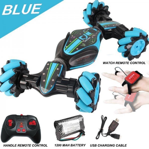 Dois modos de controle: um modo é colocar a pulseira na sua mão e controlar o carro com acrobacias, o outro é usar o controlo remoto para dirigir como deseja.