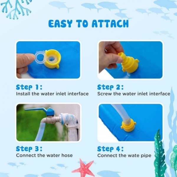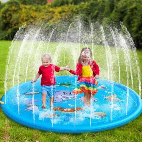 O tapete para brincar com salpicos é exatamente concebido para as crianças se molharem e salpicarem debaixo de sol quente. Sentem-se mais agradáveis e mais frescos enquanto brincam.