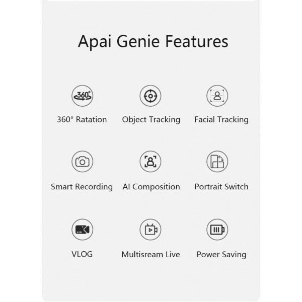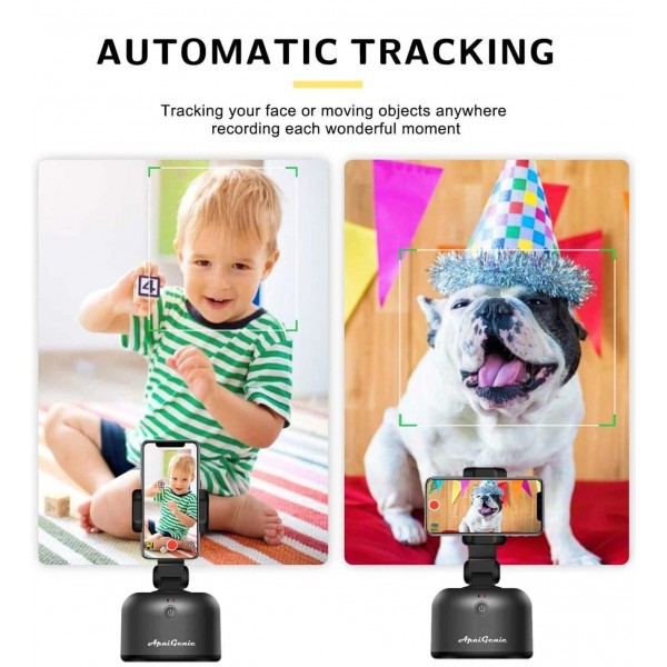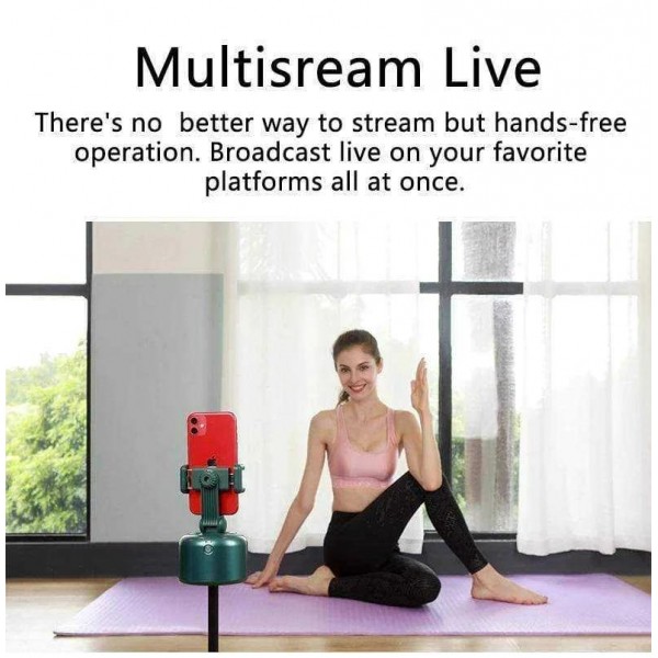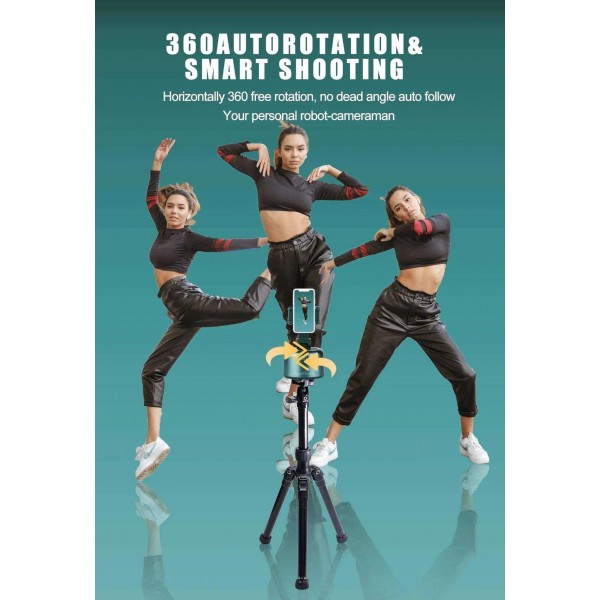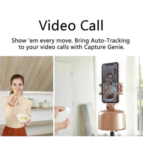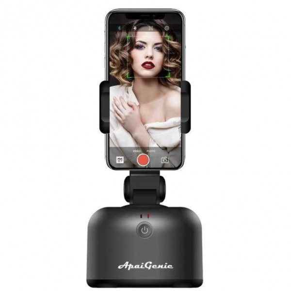 Há dois modos: “FOTO” & “AO VIVO”. O telefone roda 360° para o seguir e mantê-lo centrado na moldura ao gravar vídeo, tirar fotografias ou stream ao vivo, tirar selfies, tudo isto sem pedir ajuda.