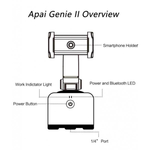 (4) Premir o botão de ligar para abrir o dispositivo, abrir a aplicação “Apai Genie”, e escolher o modo, este será automaticamente ligado. A luz vermelha, sendo longa, significa em trabalho… acompanhará o seu movimento. Não mova a cara ou objeto de forma demasiado rápida.