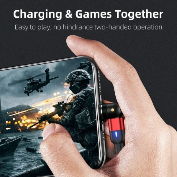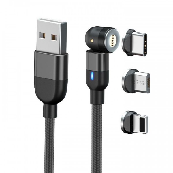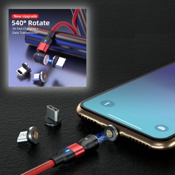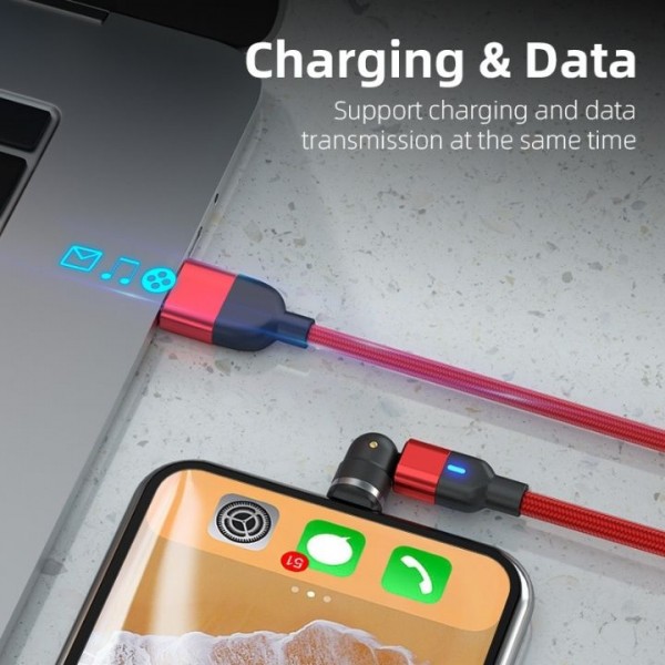 O Cabo de Carregamento Magnético Giratório é conhecido pelo seu magnetismo bastante forte e pela sua cabeça que pode ser rodada 540°.