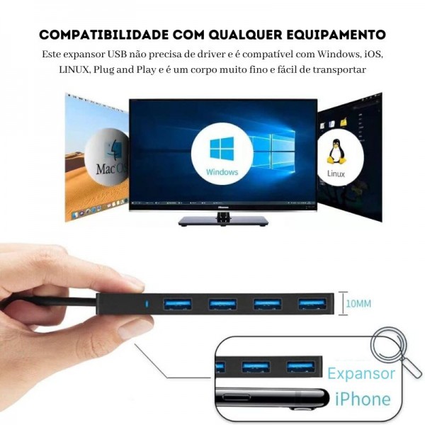 Este expansor USB pode facilmente expandir uma das portas USB do seu computador.