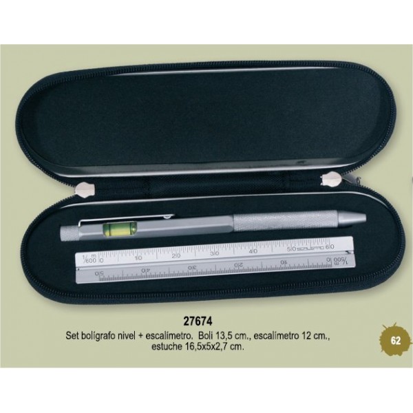 Estojo c/ Esferografica c/Nivel e escala numérica